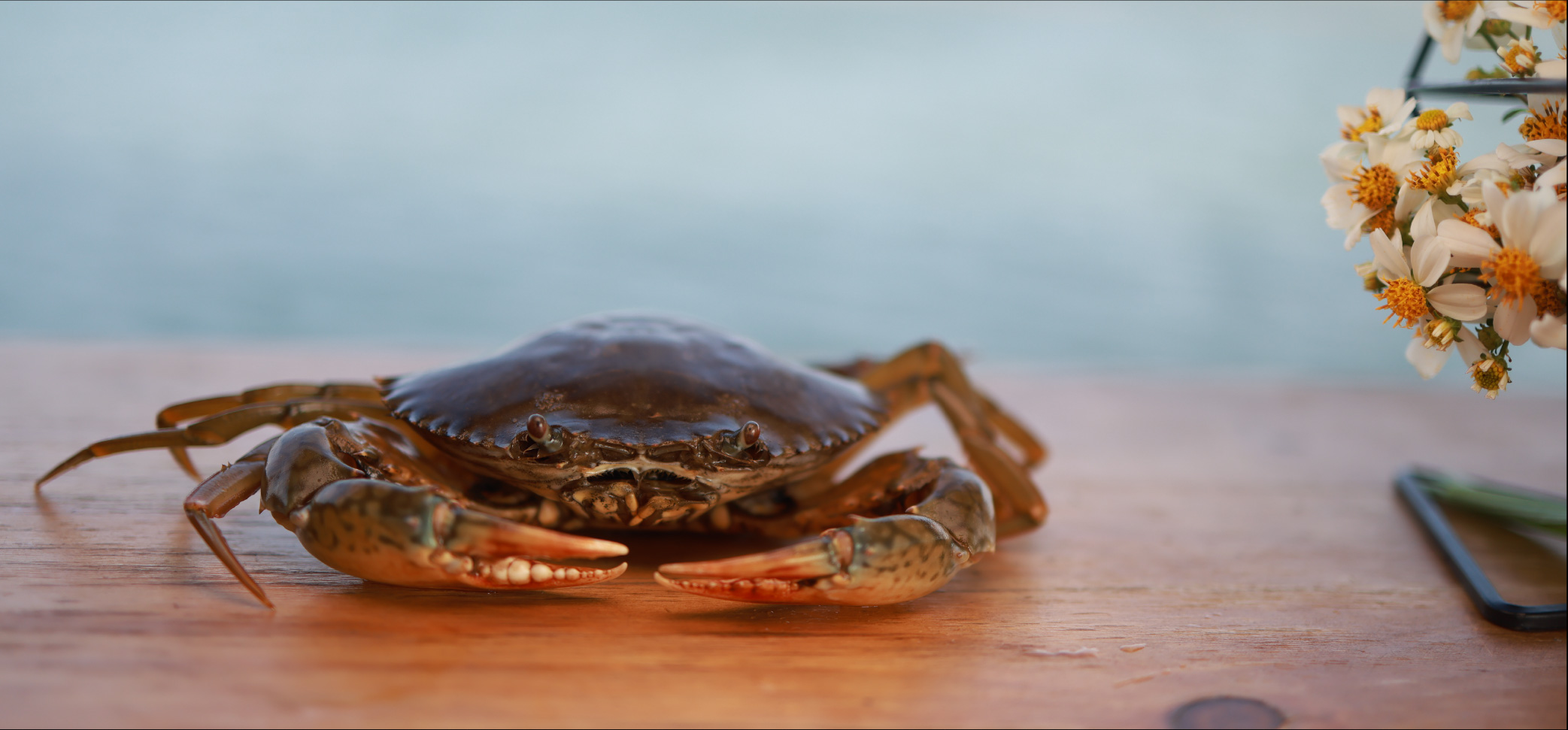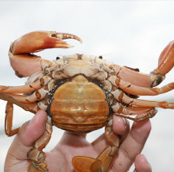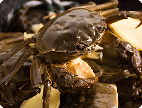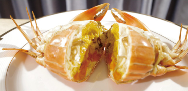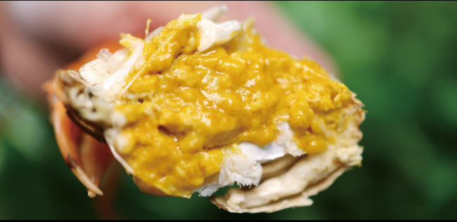 每逢炎夏,青母蟹會在產(chǎn)卵時(shí)棲身于淺灘河畔,在陽光的照射下,體內(nèi)的蟹膏分解成金黃色的油脂,然后滲透到體內(nèi)的各個(gè)部分,使得整只蟹晶瑩剔透、充滿黃油,因此被稱為黃油蟹。
